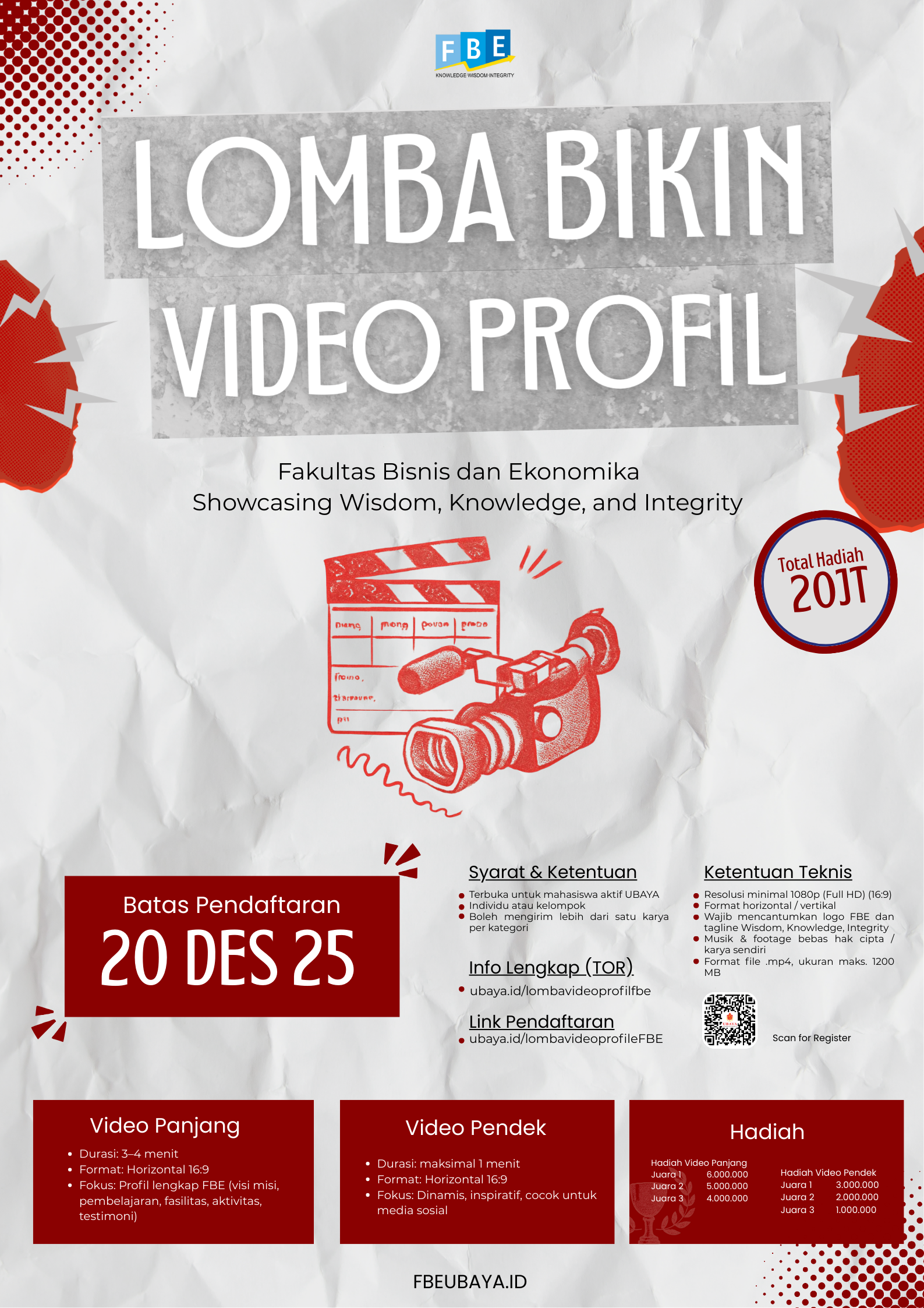 Tunjukkan Kreativitasmu! Ikuti Lomba Bikin Video Profil FBE UBAYA – Total Hadiah 20 Juta Rupiah